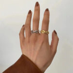 - Model: Open ring met verbonden schakels (kettingmotief)