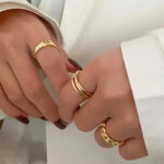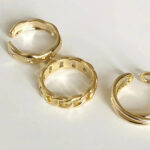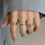 Voeg een vleugje elegante veelzijdigheid toe met dit trio goudkleurige hoopringen. De verfijnde, gedraaide structuur geeft elke ring een tijdloze charme draag ze los voor subtiele finesse of gestapeld voor een opvallende look.