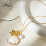 - Materiaal: 14k goudgeplateerd metaal met parel- en schelpdetails, nikkelvrij & hypoallergeen