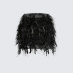 Val op met de Luciana ruchesrok, een levendig item vol kleur en textuur. De rok is geweven met veelkleurig garen en afgewerkt met speelse franjes, perfect om elke outfit op te fleuren.