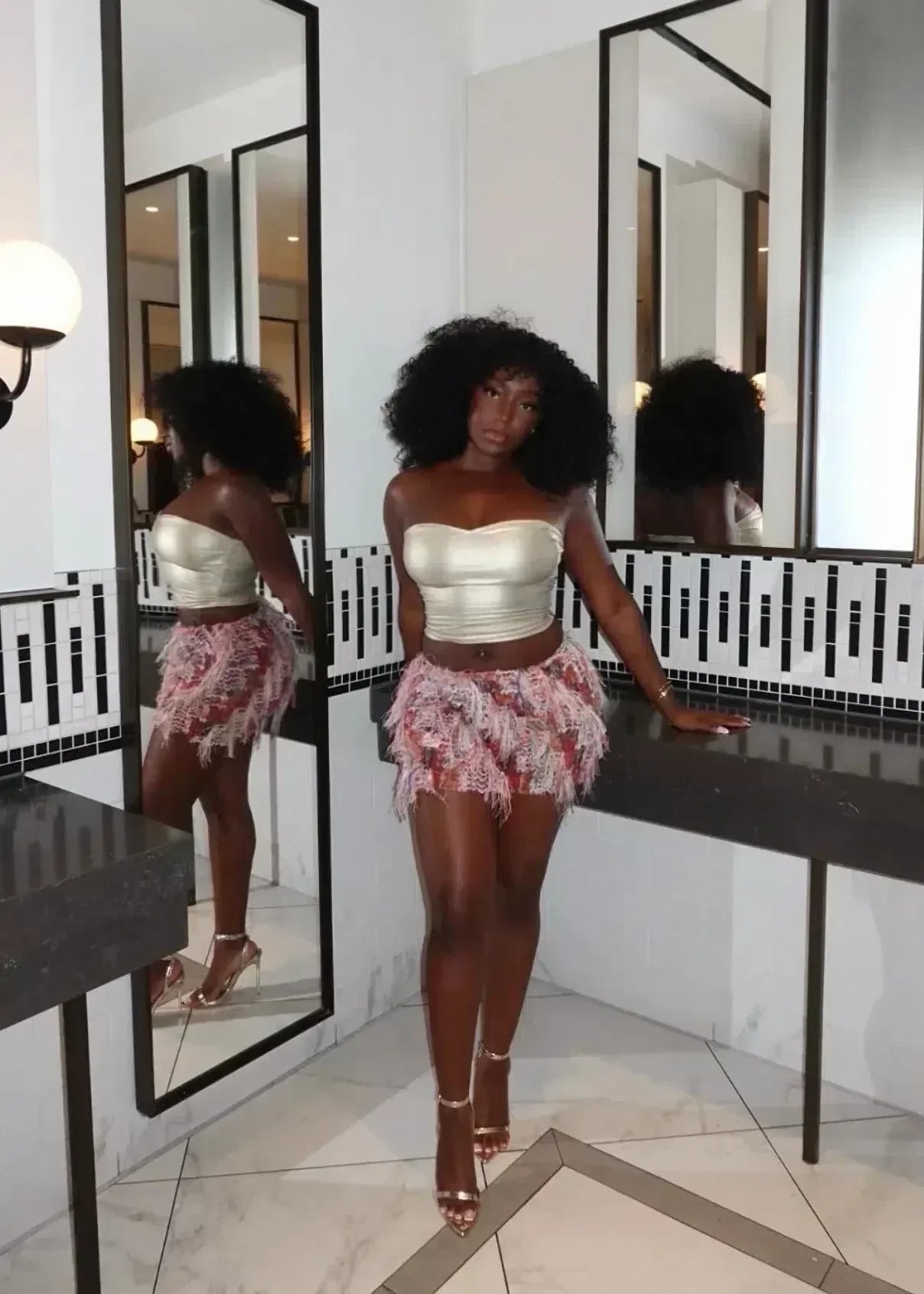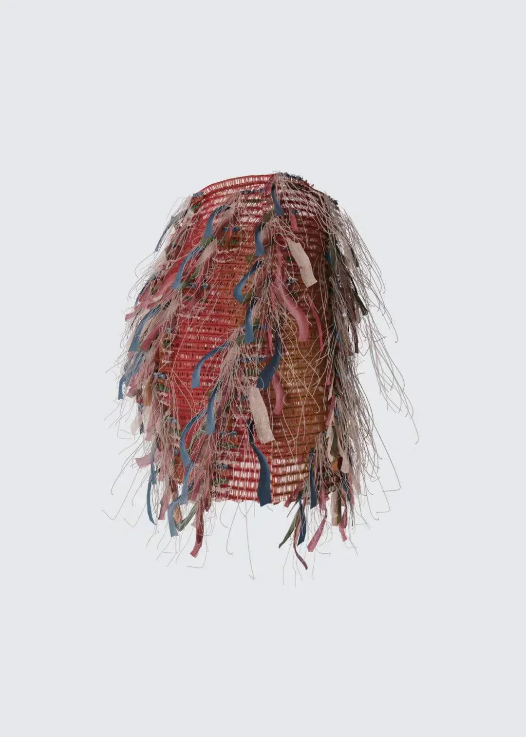 Val op met de Luciana ruchesrok, een levendig item vol kleur en textuur. De rok is geweven met veelkleurig garen en afgewerkt met speelse franjes, perfect om elke outfit op te fleuren.