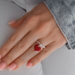 Rode Puff Hart Bedelring – Sterling Zilver met Emaille Hart