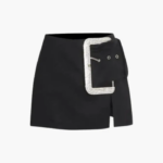 Trek de aandacht met de Zeno minirok met hoge split. Deze rok combineert een glamoureuze kristallen gesp en een sprankelend asymmetrisch ontwerp met een flatterende high-waist pasvorm.