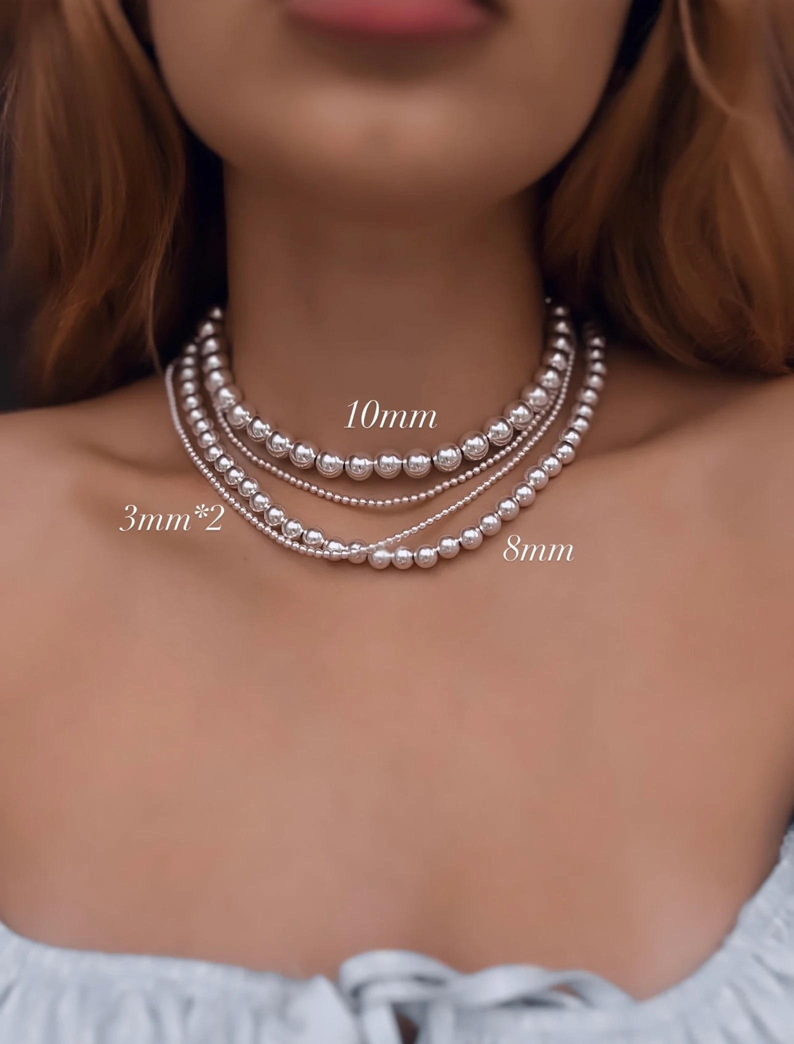Stijlvolle sterling zilveren kralenkettingen, vervaardigd met een sterk elastisch stretchkoord. Dankzij het ontwerp zonder sluiting schuif je de ketting eenvoudig over je hoofd. Comfortabel, duurzaam en een tijdloze toevoeging aan elke sieradencollectie.
