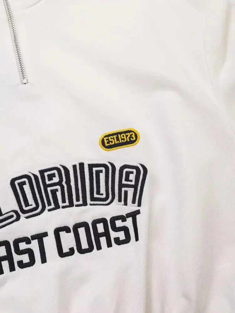Breng zon in je garderobe met de Savannah kust set met halve rits: een relaxte loungewear-combinatie voor luie dagen of stranduitjes. De stijlvolle half-zip trui met bijpassende, wijde sweatpants viert de Florida-lifestyle met speelse “Florida” East Coast-details.